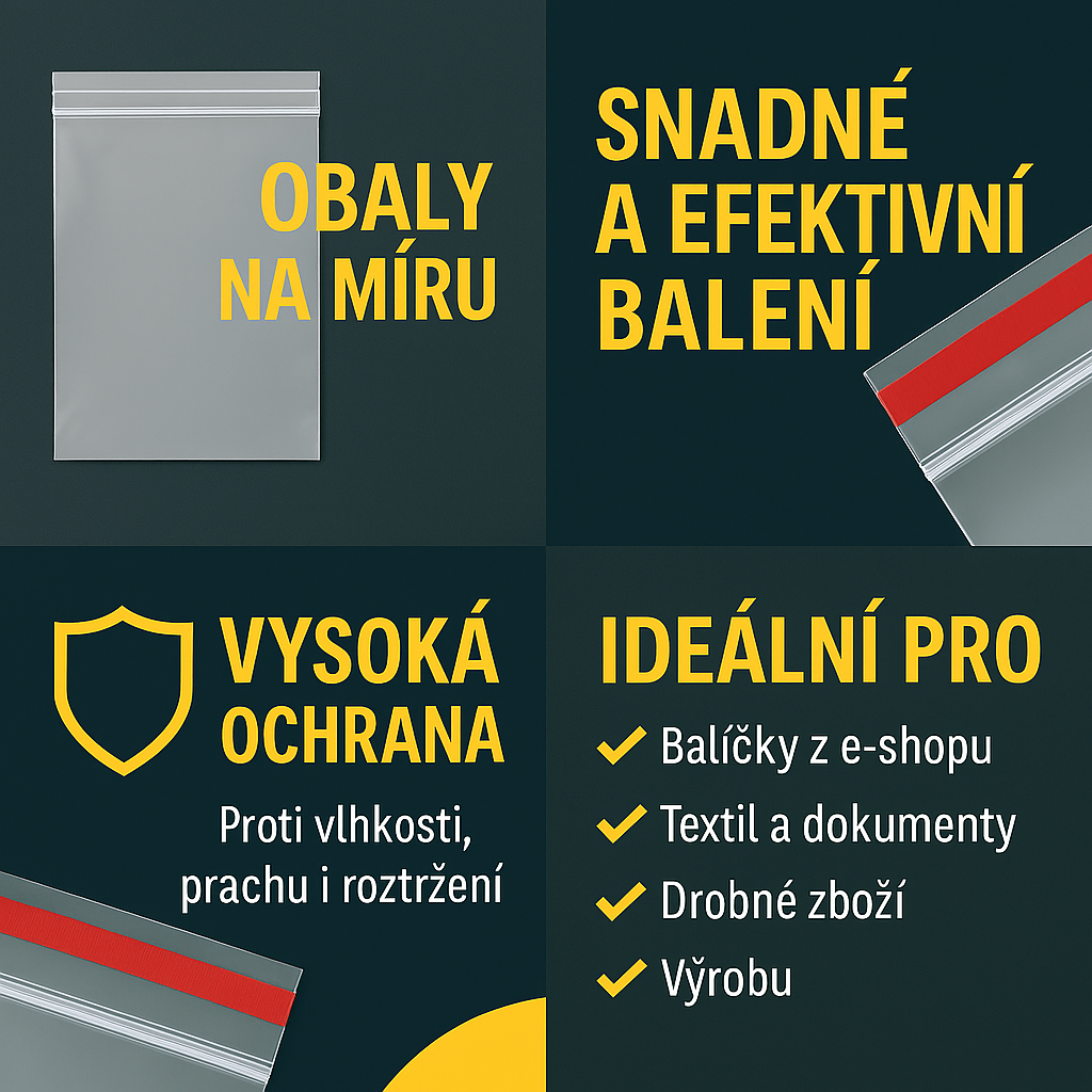 Jsme český výrobce kvalitních ZIP sáčků a obalových materiálů. Nabízíme spolehlivost, rychlou výrobu a individuální přístup. Děkujeme, že jste tady – vybírejte s jistotou přímo od zdroje.